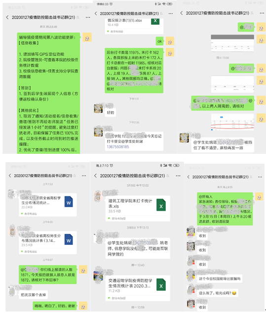 姚珺通过微信群与各教学院部及时沟通疫情情况