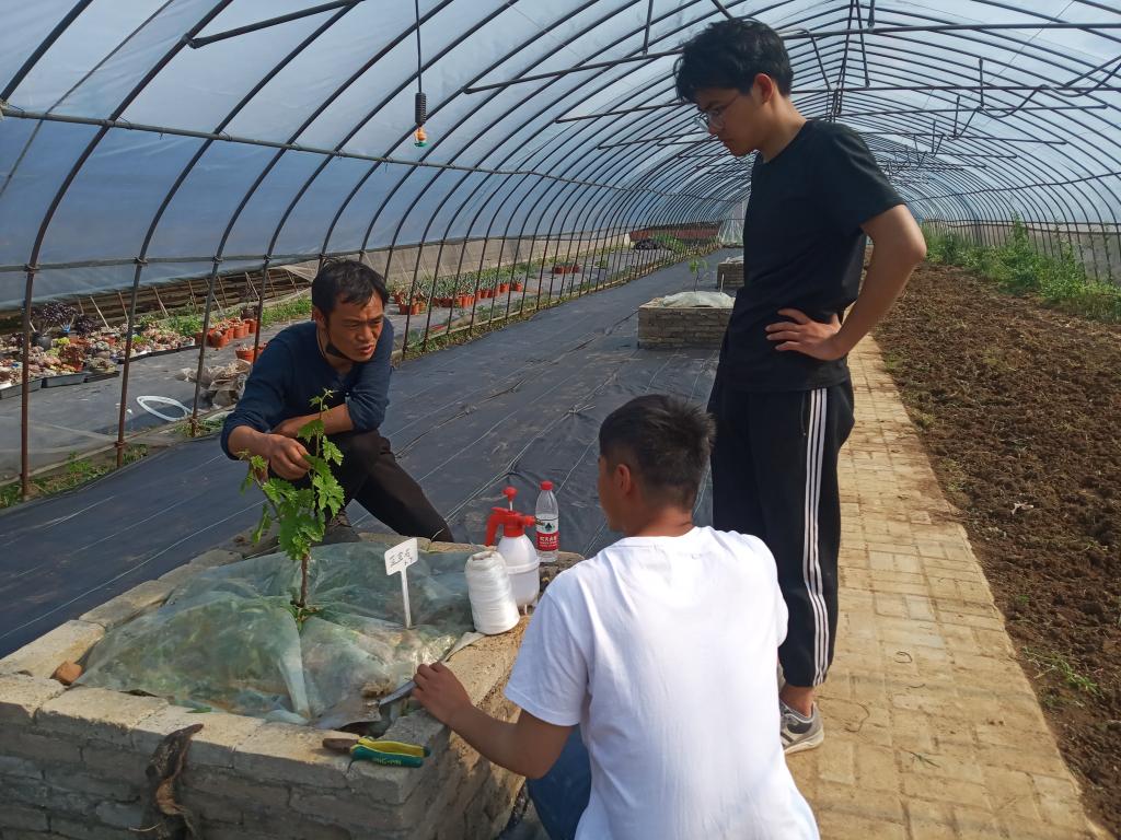 胡立虎在指导园林园艺专业师生葡萄栽培技术