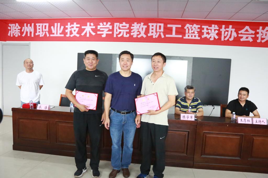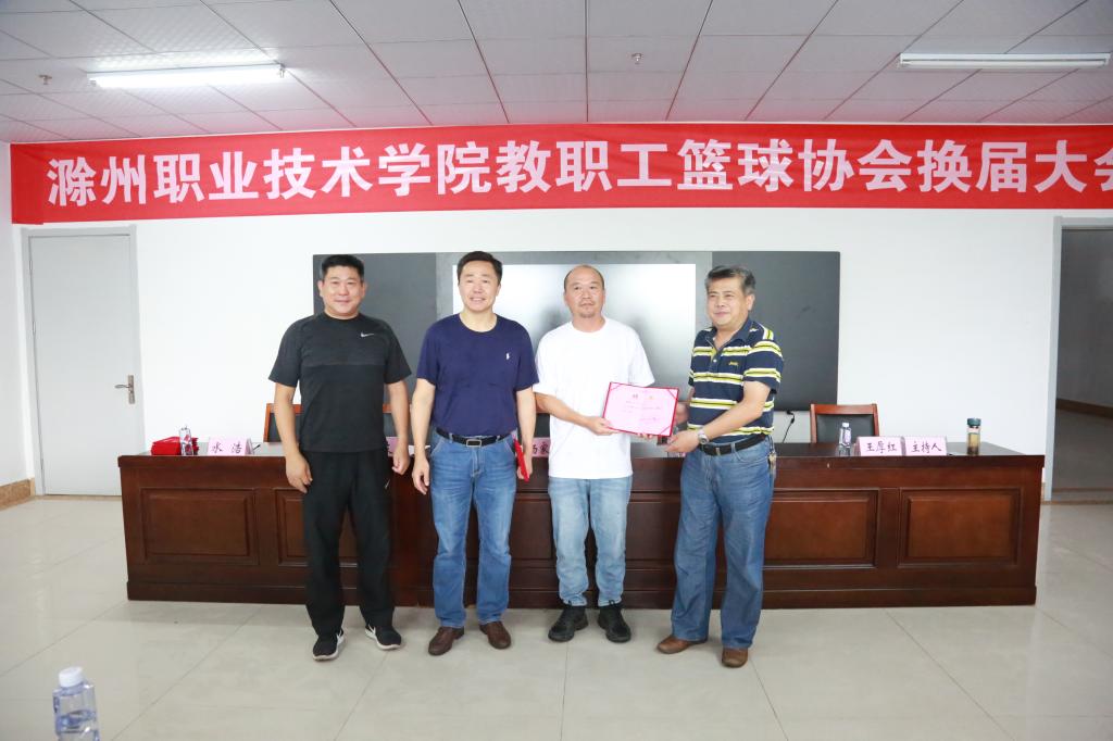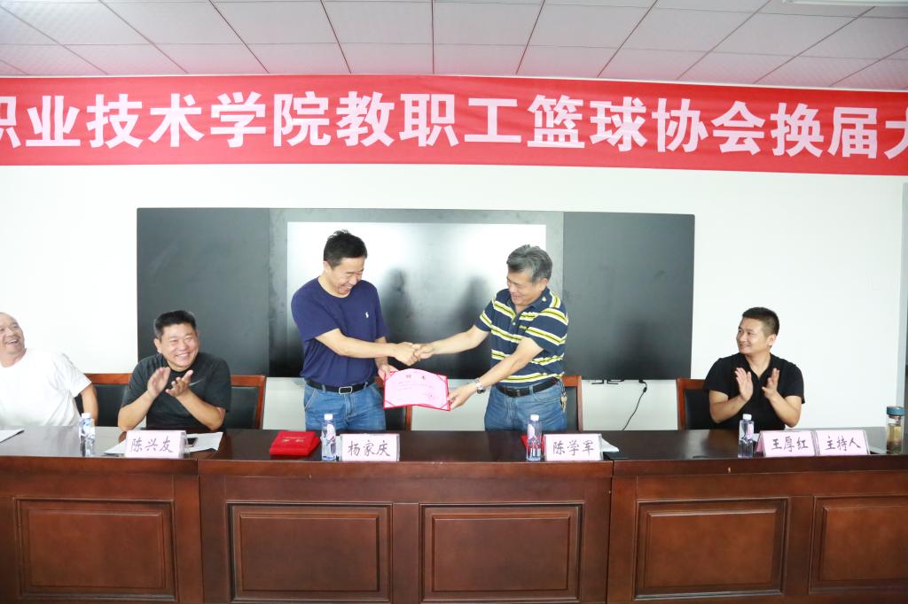 会上,校领导给校职工篮球协会委员颁发了聘书并合影留念。
