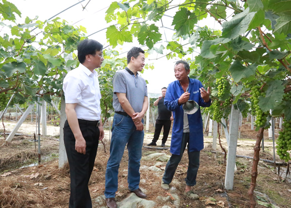 随后,杨家庆又实地走访调研回民村一村一品项目葡萄种植基地。调研中,王冬详细介绍了葡萄种植基地的生产规模、周期、种类、产量和收益等。杨家庆肯定了葡萄种植基地取得的成果,对葡萄种植基地的发展给予了宝贵的建议,并鼓励他们大力发展,为自己创收的同时,带动村里共同致富。