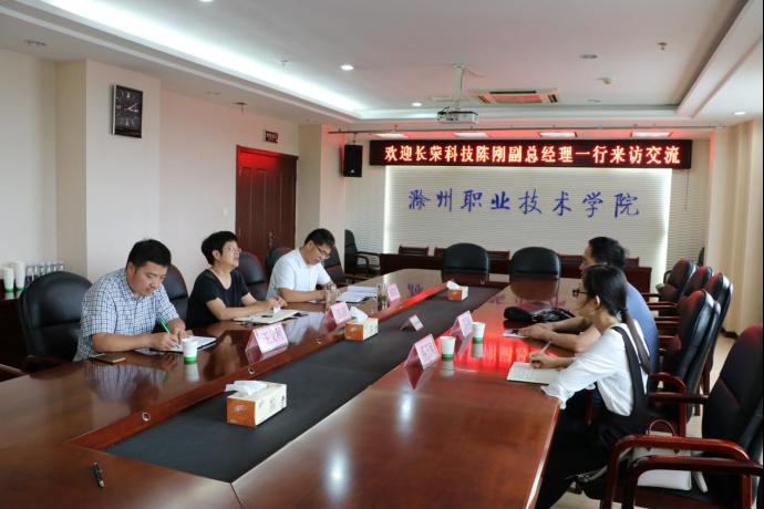 6月29日下午,安徽长荣光纤光缆科技有限公司陈刚副总经理一行来校洽谈合作,校党委委员、副校长江洁在综合楼804会议室热情接待了客人并进行深入交流,招生就业处副处长周多道、王义利陪同。