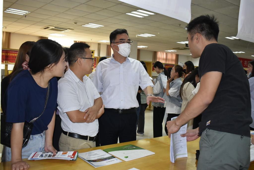 9月26日上午,在校招生就业处的牵头组织下,食环学院2021届毕业生双选会在学校综合楼一楼就业服务大厅隆重举行。校党委委员、校长助理穆松亲临现场指导,食环学院党政领导及各系主任、辅导员全部到场。滁州中鹏环保集团、安徽盼盼食品有限公司、安徽绿泉生态园林有限公司等30余家企业来到我院招贤纳士,为我院230名毕业生提供400余个就业岗位。