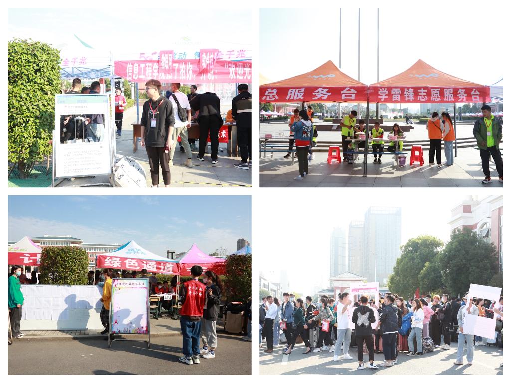 各学院积极响应学校号召,开展了形式多样的迎新活动。每个学院在服务点放置学院宣传展板,详细介绍专业信息和师资情况,让新生对所在学院能有一个初步的了解和认识。信息工程学院,管理学院等学院还为新生准备了生动有趣的拍照纪念展板和新生签名墙, 让学生及家长能够拍照留念,留下入学第一天的美好回忆。校园内还专设了“学雷锋志愿服务台”,安排值班老师和同学为新生与家长提供服务。