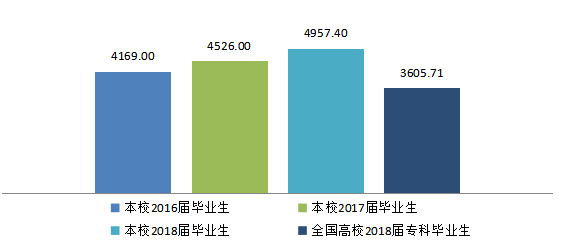 2018届毕业生总体月均收入为4957.40元:比2016届毕业生的月均收入(4169.00元)高788.40元,比2017届毕业生的月均收入(4526.00元)高431.40元,比全国高校2018届专科毕业生月均收入(3605.71元)高1351.69元。