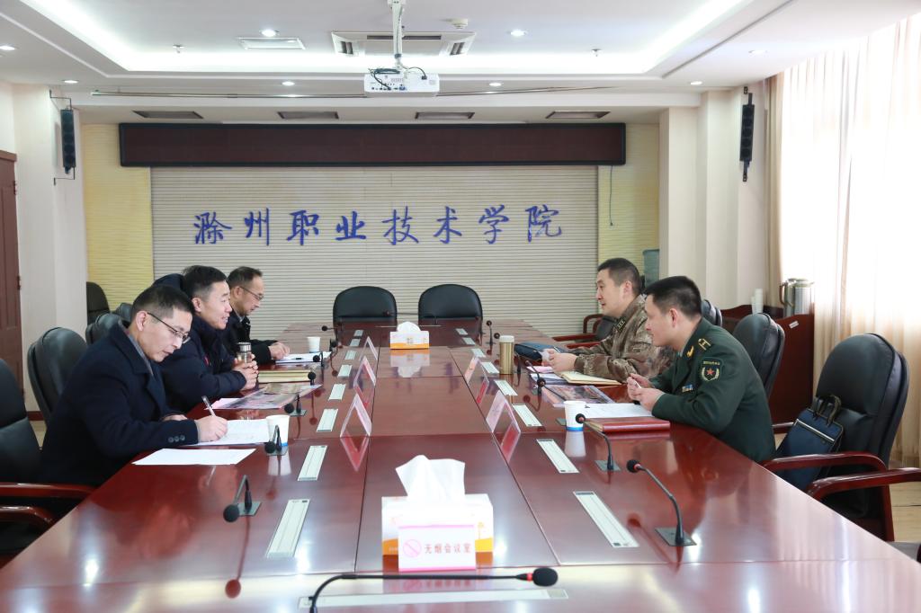 1月28日上午,滁州军分区国防动员处处长韩东带队来金沙威尼斯调研指导工作。校党委副书记杨家庆在综合楼904会议室热情接待了调研组一行。