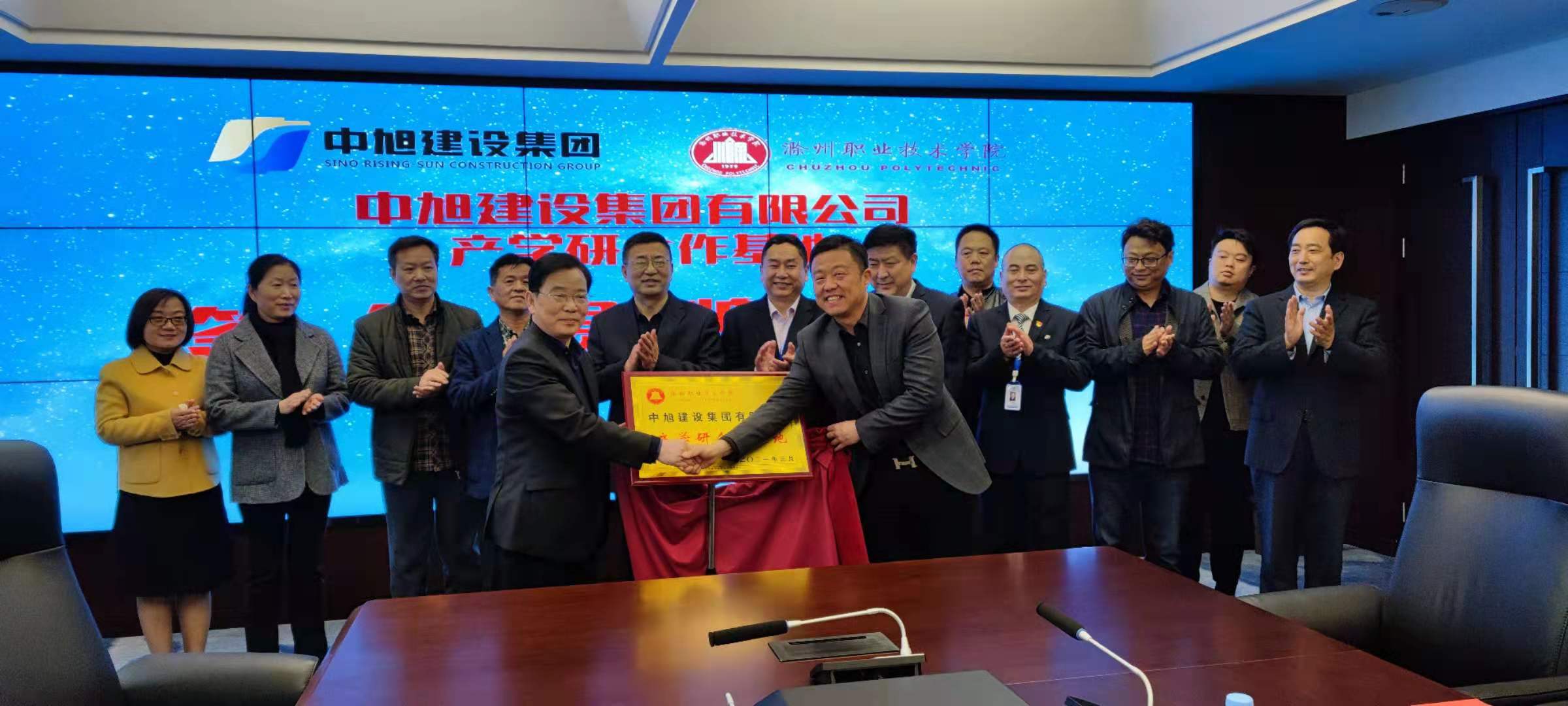 3月31日下午,金沙威尼斯与中旭建设集团有限公司产学研合作签约仪式在中旭集团会议室举行。校党委书记李柱梁,校党委委员、校长助理、滁州职教集团秘书长、招生就业处处长穆松,中旭集团公司董事长张旭东,总裁王恩陆,党委副书记吴常永,副总裁闵志、马正刚,党委委员、纪委副书记赵核平,开发部经理韩嵘等出席了签约仪式。仪式由中旭集团总裁办主任王毓松主持,金沙威尼斯建筑工程学院院长朱永祥、建筑工程学院党总支书记刘文元、管理学院院长翁嘉晨、科技处处长李爱红等参加了会议。