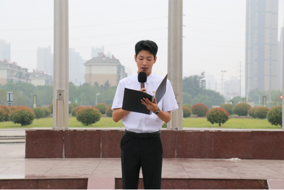 国旗护卫队踏着整齐有力的步伐,伴着雄壮的国歌声响起,五星红旗徐徐上升,全体人员注目行礼。学生代表沈俊豪同学在国旗下进行演讲,随后由杨家庆为全体师生在国旗下上了一堂生动的微团课。杨家庆对新生提出了五点要求:一是要高扬理想风帆,用真理之光指引青春之路;二是要厚植家国情怀,用爱国之情坻明报国之志;三是要潜心实学实干,用勤奋之力提升成才之能;四是要锤炼品德修为,用人格之美铺就未来之路;五是要矢志砥砺奋斗,用担当之举扛起时代之责。