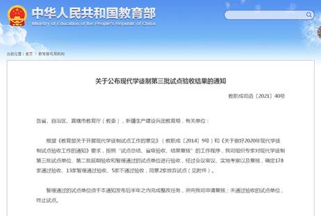 图1:教育部网站公布的现代学徒制试点验收结果