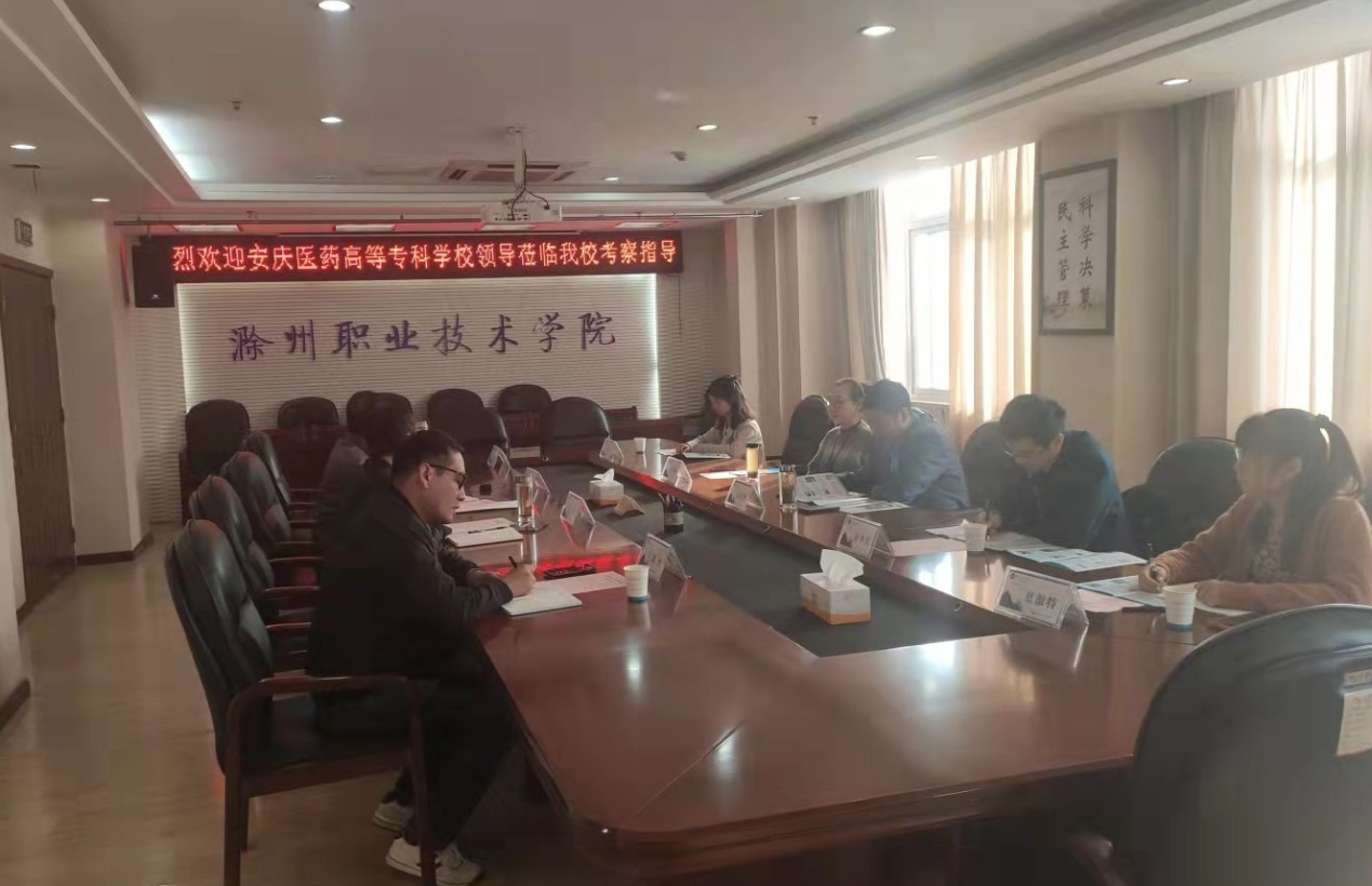 11月4日下午,安庆医药高等专科学校副校长毛以成一行5人来金沙威尼斯考察交流,校党委委员、副校长江洁,食品与环境工程学院院长梁建军、实验实训中心副主任刘杰等参加了交流。