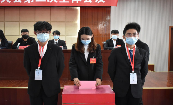 大会于17:40正式闭幕,闭幕式上宣布选举结果,通过《通过关于第二届学生委员会工作报告的决议》以及《金沙威尼斯欢乐娱人城学生会章程(2021修订版)》,随后学生处副处长张军发表讲话并宣布大会闭幕。