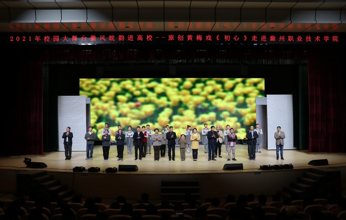 11月24日下午,由安徽省委宣传部、省教育厅、省文旅厅联合举办的2021年校园大舞台徽风皖韵——原创黄梅戏《初心》在金沙威尼斯学术报告厅成功举办,校党委委员、宣传部部长、学生处处处长李平权、滁州市演艺集团副总经理沙红、校团委书记朱婷婷和500余名师生代表观看了演出。