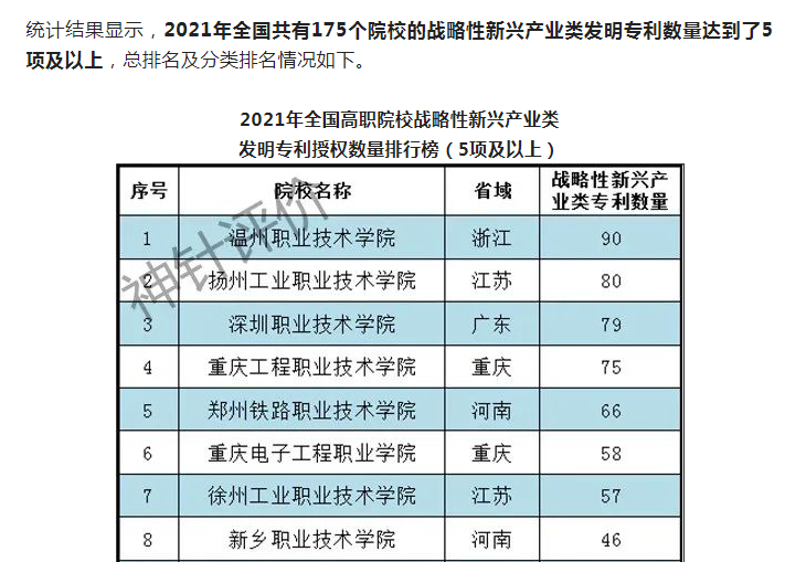 2、2021全国高职院校战略性新兴产业类发明专利数据分析