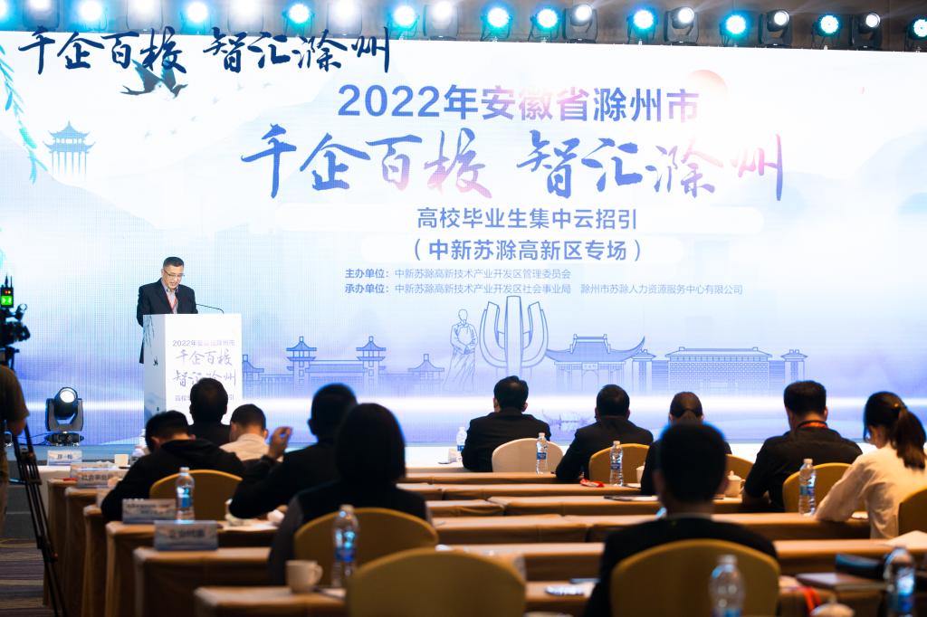 4月26日上午,由中新苏滁高新技术产业开发区管理委员会主办,中新苏滁高新技术产业开发区社会事业局、滁州市苏滁人力资源服务中心有限公司承办的“千企百校•智汇滁州”高校毕业生集中云招引(中新苏滁高新区专场)启动仪式在港汇喜来登二楼宴会厅举行,本次活动面向中新苏滁高新区所有企业及安徽理工大学、淮南联合大学、安徽工贸职业技术学院等高校毕业生。金沙威尼斯校长助理、招生就业处处长穆松,招生就业处副处长王义利受邀出席。穆松作为高校代表应邀发言。