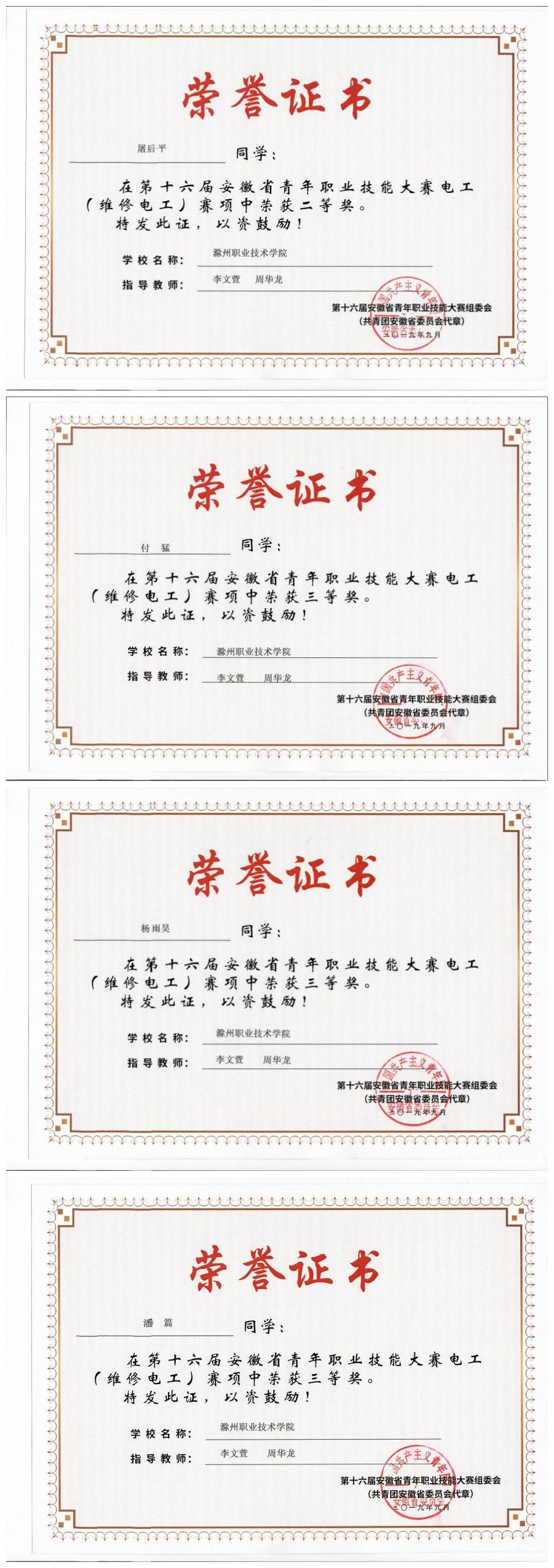 大赛共吸引了来自全省16个地市34家单位75名选手报名参赛,金沙威尼斯是由校团委书记朱婷婷带队,电气工程学院李文萱、周华龙两位教师进行大赛指导,经过4天的紧张比赛,金沙威尼斯参赛选手凭借着纯熟的技巧、扎实的功夫通过理论知识竞赛和实际操作竞赛,最终收获成绩斐然,屠后平荣获学生组二等奖。付猛、杨雨昊、潘篇三位同学荣获学生组三等奖。