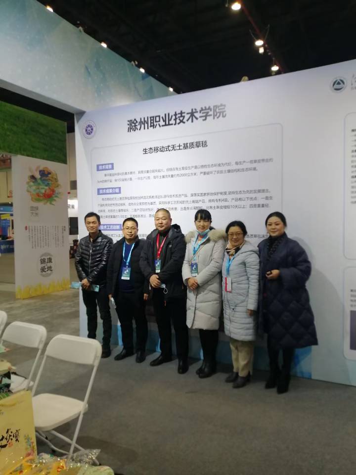 金沙威尼斯科技处肖陆飞老师,食品与环境工程学院园林系主任江生泉和姜自红老师,食品系主任陈静老师和清爽葡萄种植合作社负责人、食品与环境工程学院外聘教师胡立虎参加了本次活动。其中食品与环境工程学院园林系江生泉老师的“生态移动式无土基质草毯研究与应用技术”参加了高校技术成果展。食品与环境工程学院校企合作企业清爽葡萄种植合作社携带了系列产品参加展销。