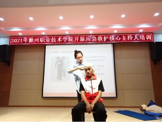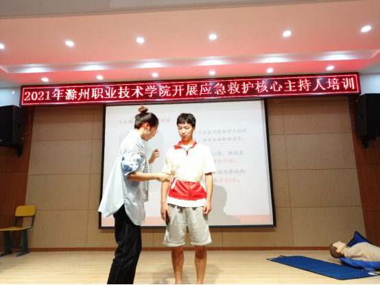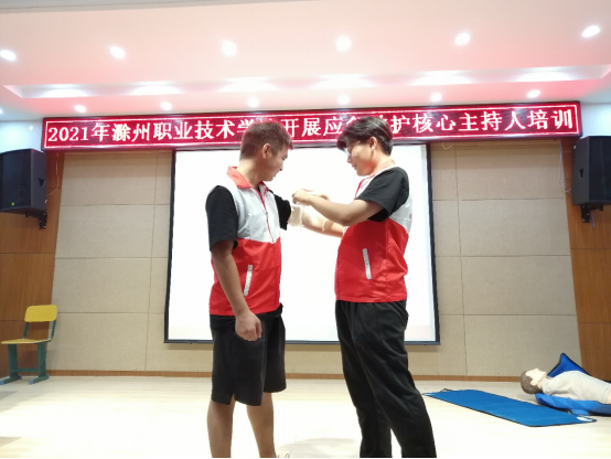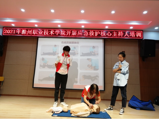 为推广普及应急救护的基本技能,提高金沙威尼斯学生的自救互救意识和能力,传播“人人学急救,急救为人人”的红十字会人道救护理念,金沙威尼斯红十字会在南阶203举办了2021金沙威尼斯欢乐娱人城应急救护核心主持人培训,由团委朱芡芡老师、南谯区卫健委范家月老师为各学院77名同学进行了培训。