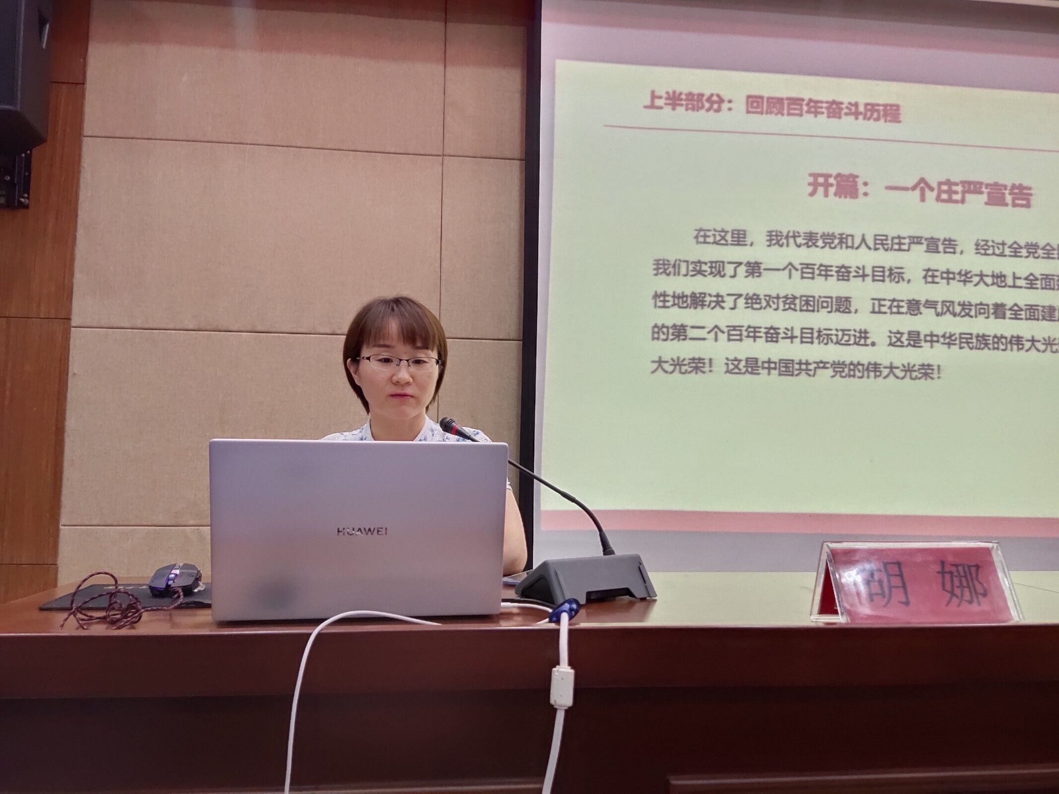 在培训过程中胡娜书记形象、系统地将习近平总书记“七一”讲话分为“两个部分”、“四个篇章”、“九个坚持”,并在回顾党的百年奋斗问题时用“开天辟地”、“改天换地”、“翻天覆地”和“惊天动地”四个词概括了习近平总书记的上半部分讲话;用“九个坚持”概括了习近平总书记的下半部分讲话,在提到新的历史起点上需要开拓进取的志气、骨气和底气时,胡娜书记引用了西安交大王树国校长的讲话来为同学们解释“三气”含义。