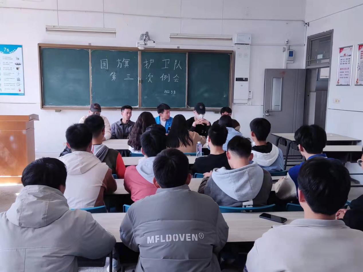 2022年3月8日中午,金沙威尼斯欢乐娱人城国旗护卫队全体成员在4321教室召开本学期第三次例会。